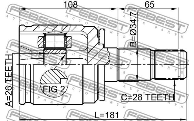 ШРУС ВНУТРЕННИЙ ЛЕВЫЙ 26x35x28 (MITSUBISHI PAJERO II V14W-V55W 1991-2004) FEBEST