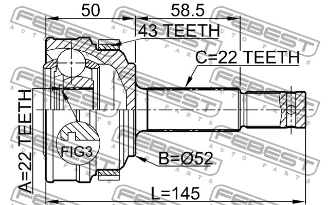 ШРУС НАРУЖНЫЙ 22x52x22