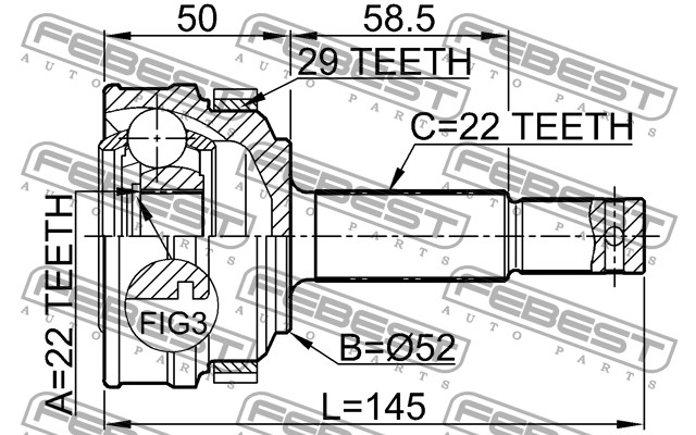 ШРУС НАРУЖНЫЙ 22x52x22