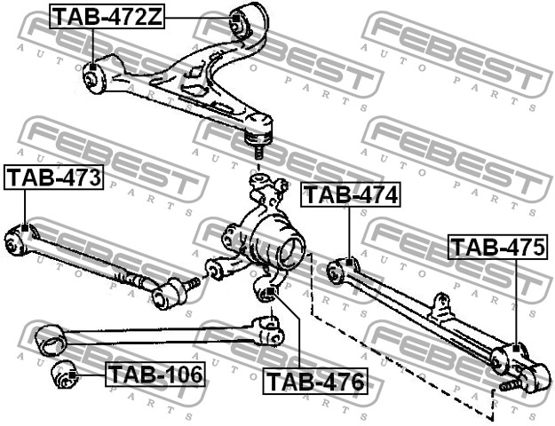 САЙЛЕНБЛОК ЗАДНЕГО ПОПЕРЕЧНОГО РЫЧАГА (TOYOTA CROWN/CROWN MAJESTA UZS151 1995-1999) FEBEST